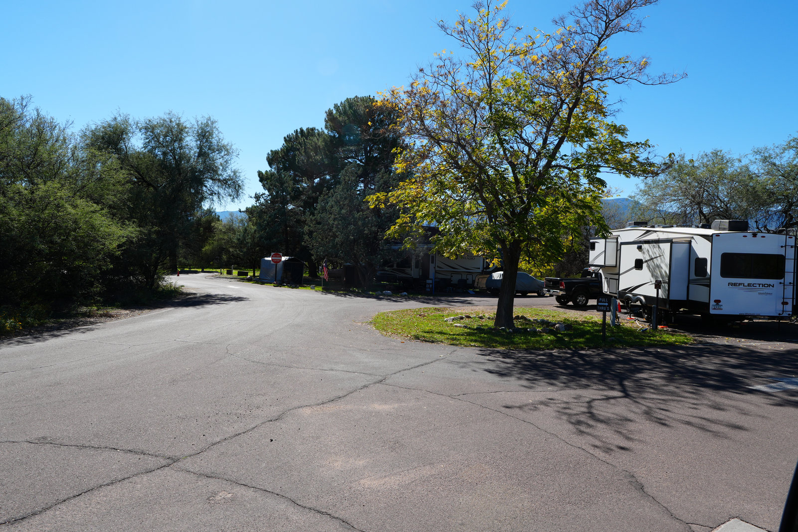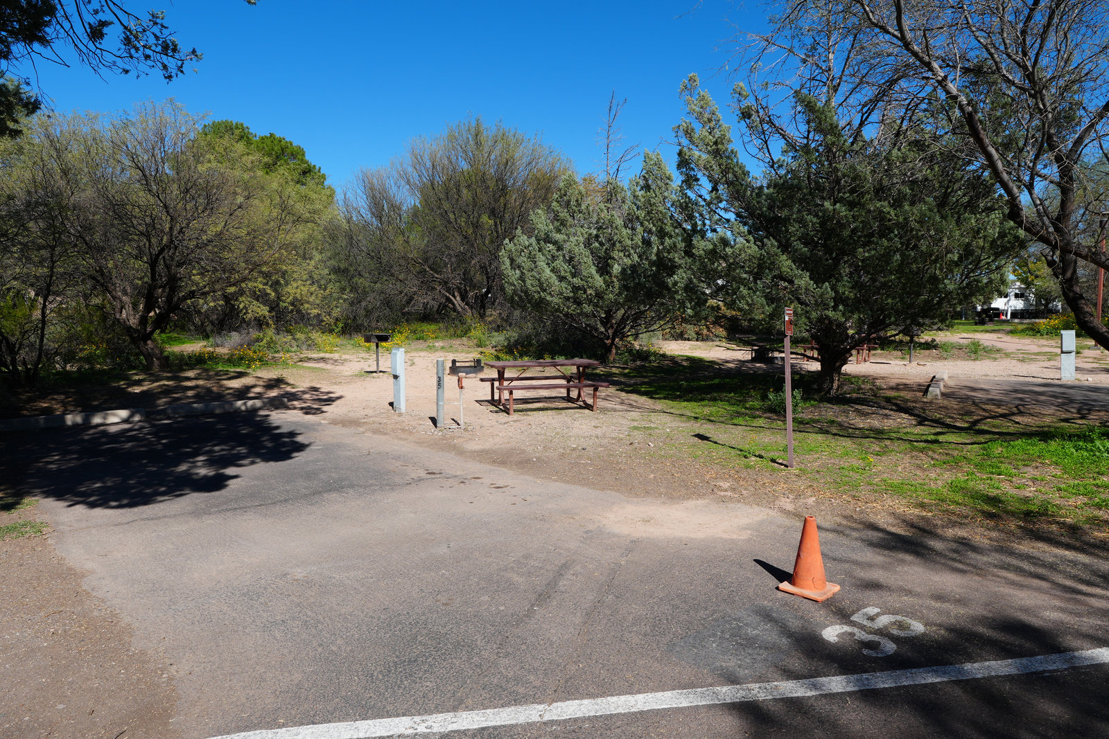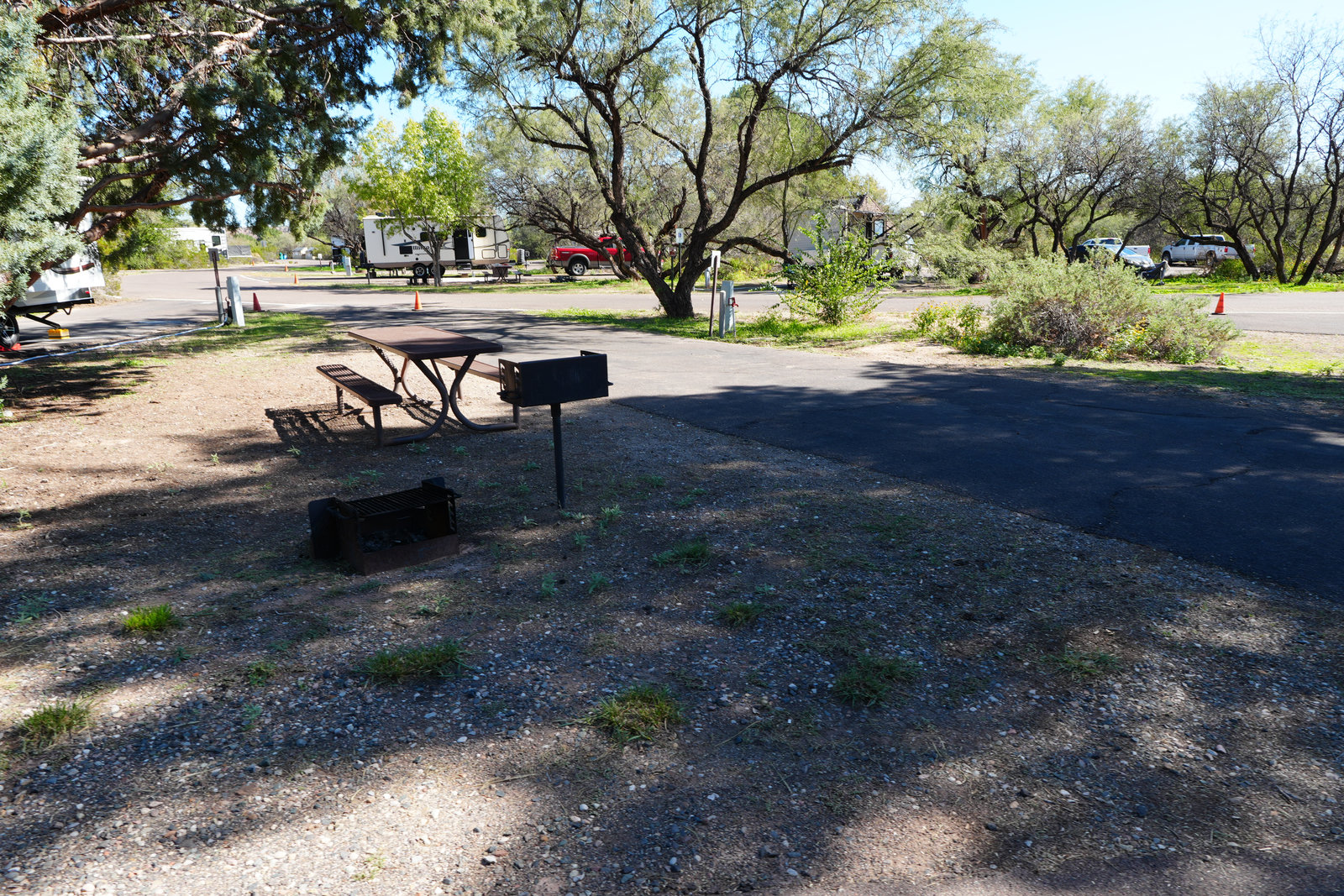 Dead Horse Ranch is the easy button for Verde Valley trips. Sites sit on gentle hills above three fishing lagoons with views toward Mingus and the red rocks. Loops are named Roadrunner, Quail, and Cooper’s Hawk. Expect level pads, good spacing, and modern bathhouses with showers.